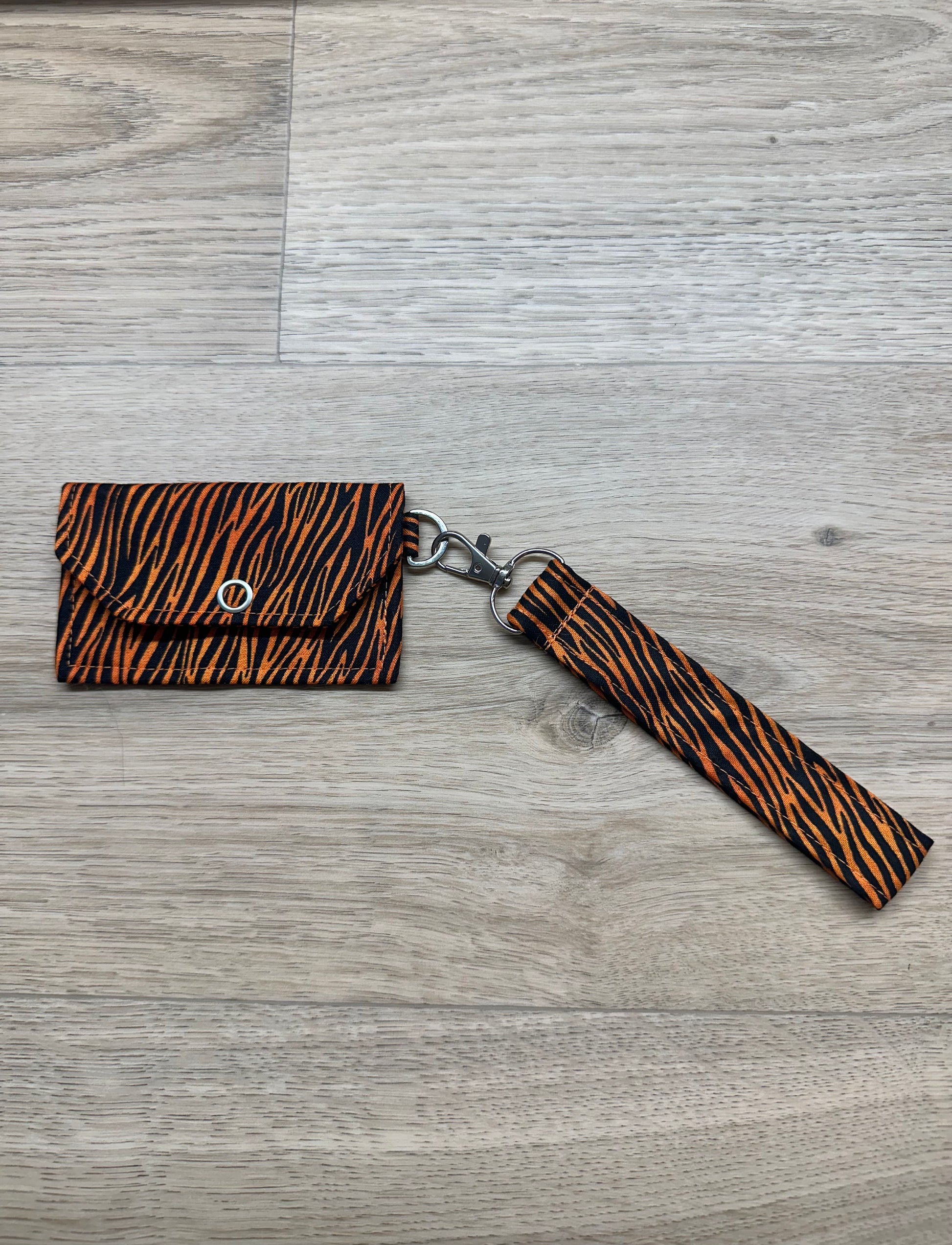 Håndlaget kortmappesett sydd i 100% bomullsstoff med fint mønster. Dette settet inneholder kortmappe og nøkkelring, i samme stoff.