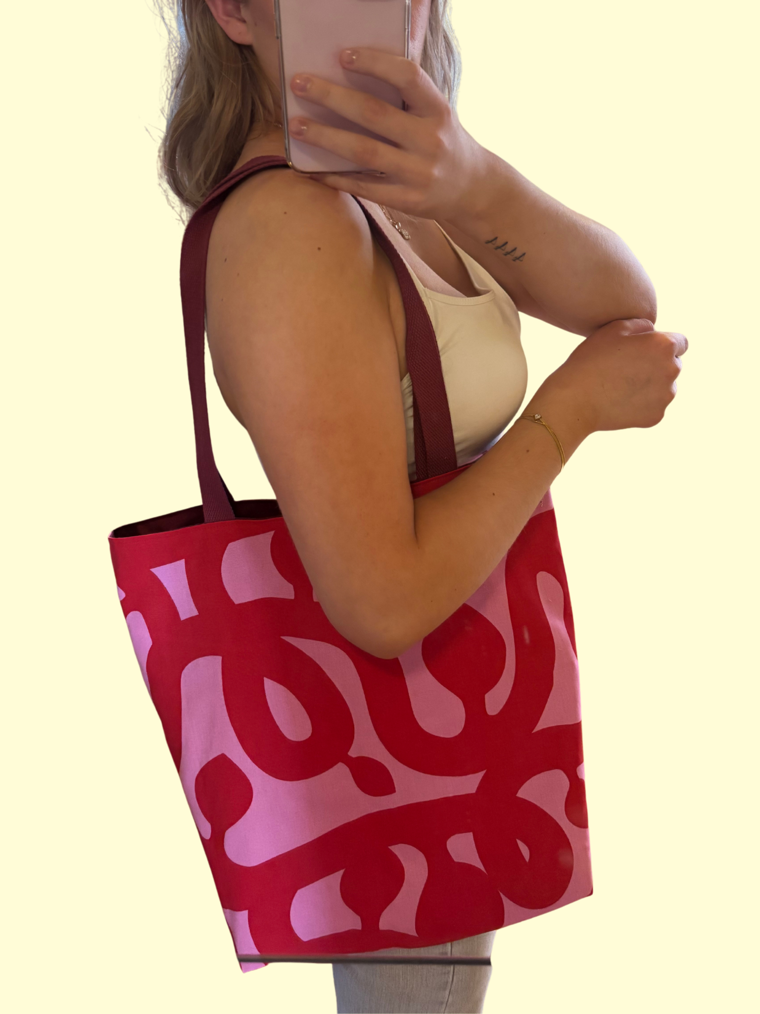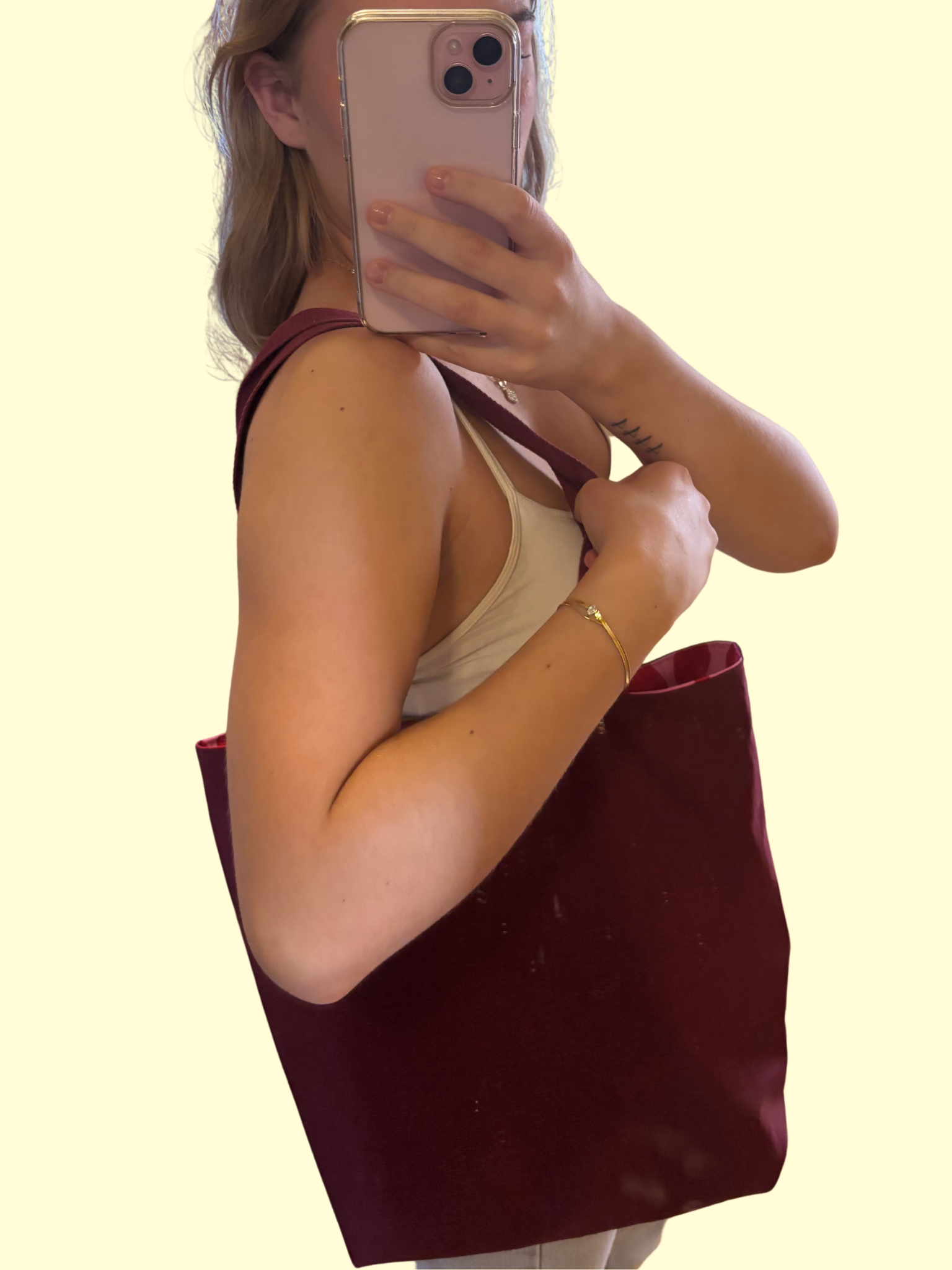 Denne har ingen synlig søm for vrengehul, og kan derfor brukes med begge sidene ut. Du få altså 2 vesker for prisen av 1❤️